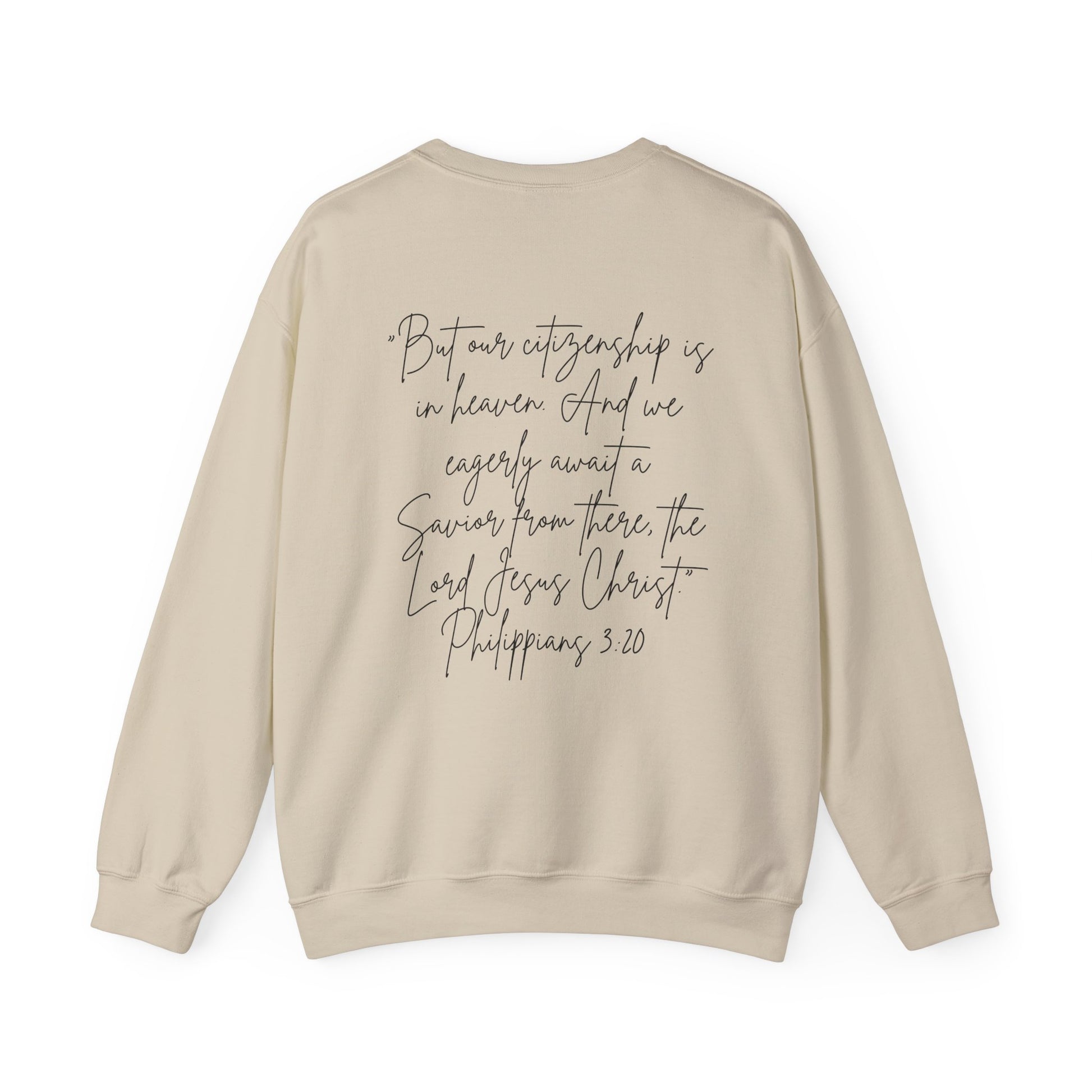 Whether you're heading to a casual gathering, diving into your quiet time, or simply embracing the beauty of living for eternity, this sweatshirt reminds you to keep your heart set on things above.
